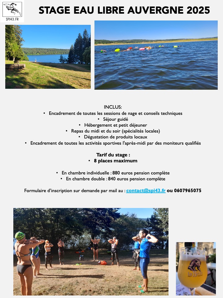 Stage Eau libre Auvergne 2026 du 2 au 8 Aout 2026